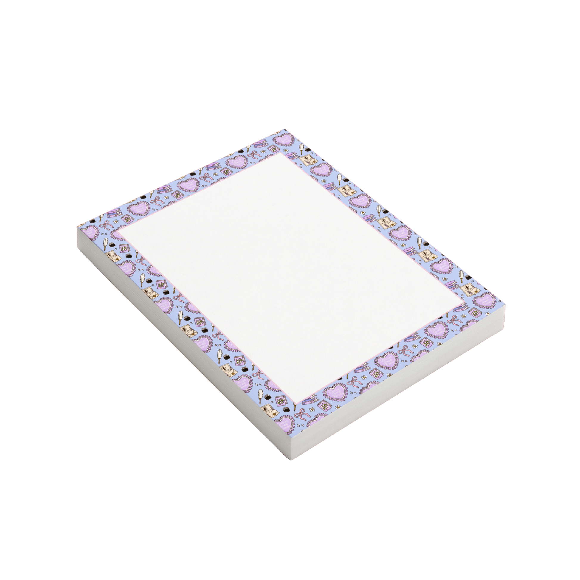 For lovers of literature and leisurely afternoons, this notepad is inspired by the romance of the Regency era and the joy of a well-loved book. Featuring delicate hearts, bows, and literary motifs on a soft lavender background, it’s equal parts cozy and charming.